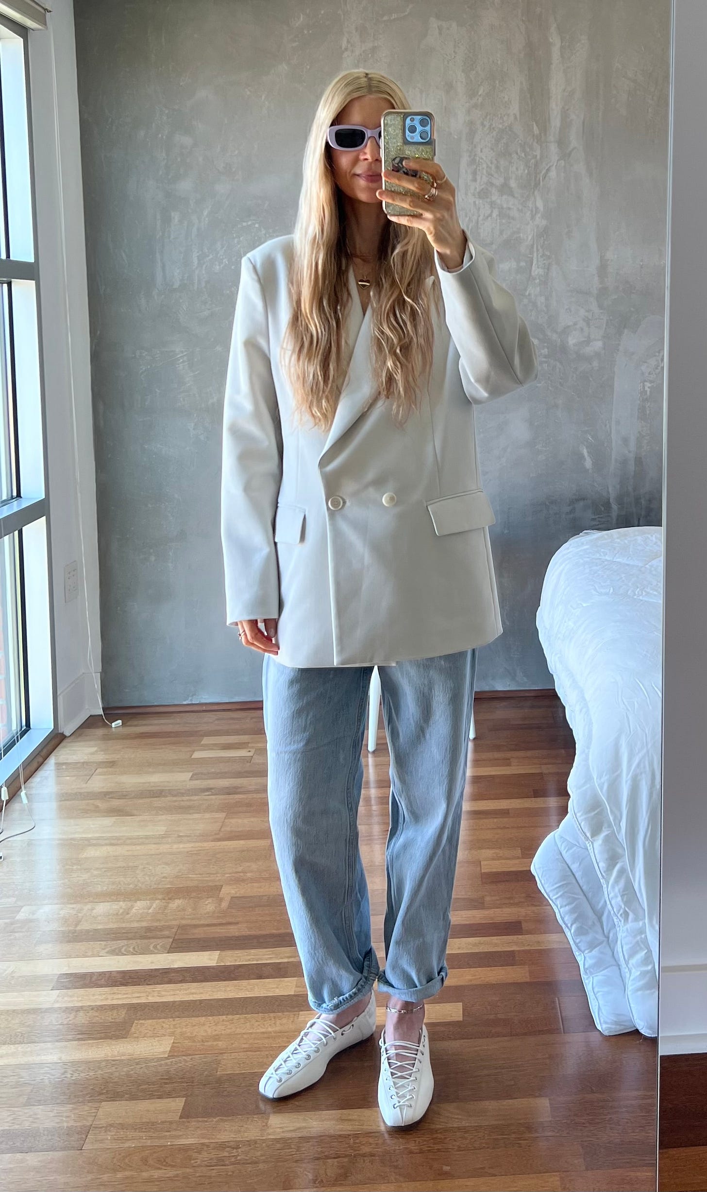 Since then, I've written about going from a chaotic maximalist to an ultra minimalist wardrobe in the last year as my outlook has shifted into more timeless dressing from a sustainability viewpoint. I've turned into a chronic outfit repeater and love nothing more than a groutfit, statement blazer, loose jeans, and flat shoes (2000s me could never). My outfits are still accessorized with all of the jewelry since I feel discombobulated without my earrings, rings, bracelets, and necklaces.