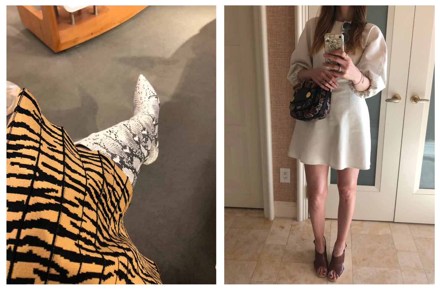 Mid to late 2010s: I alternated between high rise skinny jeans, a concert tee, and a bandana for casual moments and using my Rent The Runway Unlimited subscription to rent every statement dress and skirt available. There was this Proenza Schouler tiger print pleated skirt that I was obsessed with, and when it was available I would hang onto it for weeks at a time. I loved wearing this skirt with these faux snake print knee high boots, which should tell you everything you need to know about this style chapter.