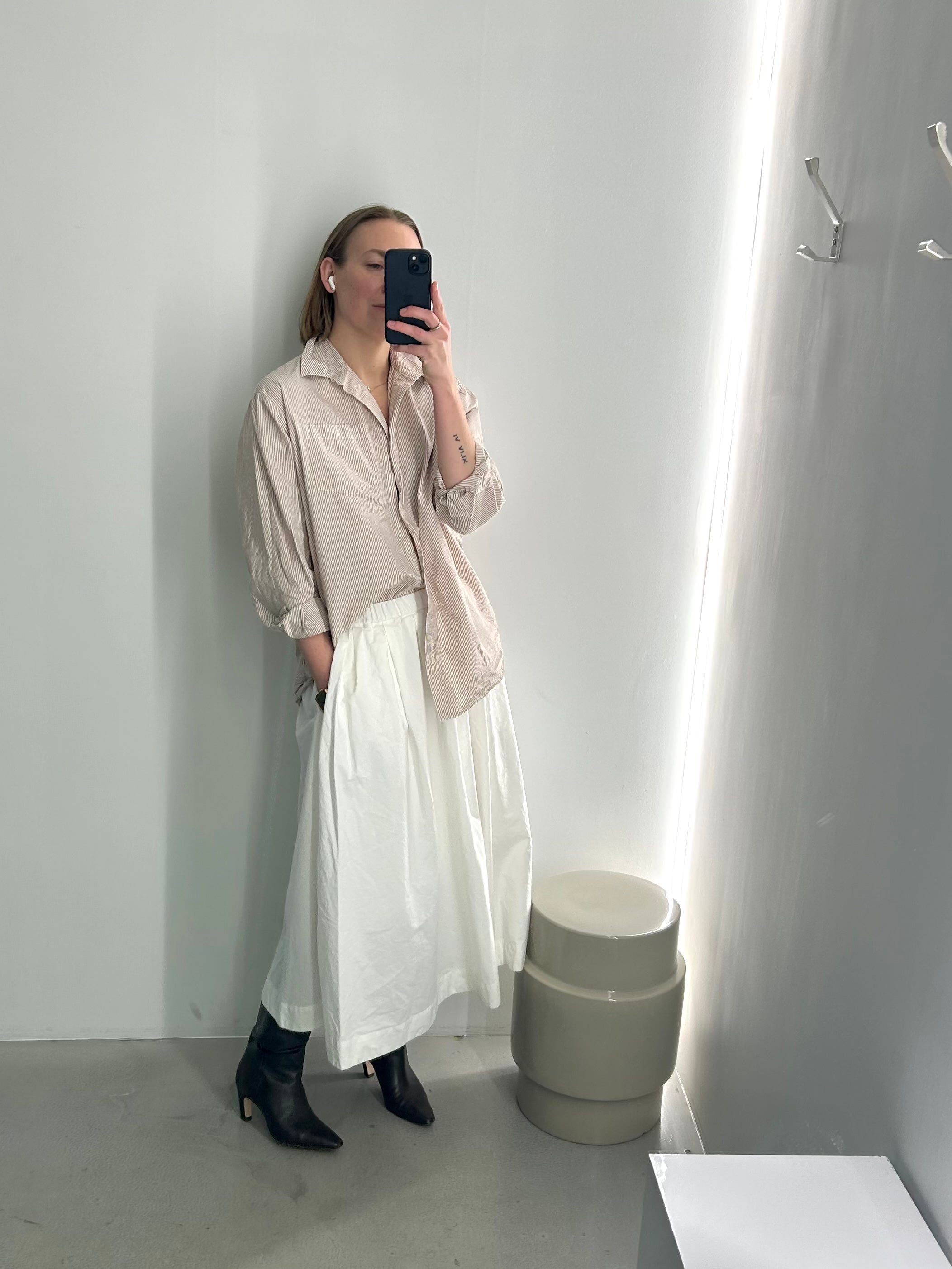 A Frankie Shop button down, Maska linen dress, and a few pairs of jeans.