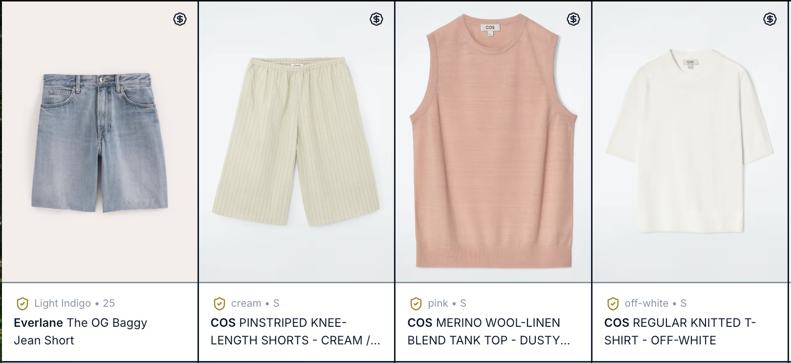 Can I change this to last four things? (Our answer, of course). At time of writing, my most recent purchase was this pair of baggy shorts from the Everlane sale. Prior to that, I shopped the COS sale and bought these pinstripe baggy shorts, this pink linen blend tank, and this white merino tee.