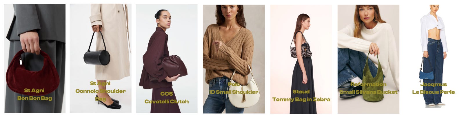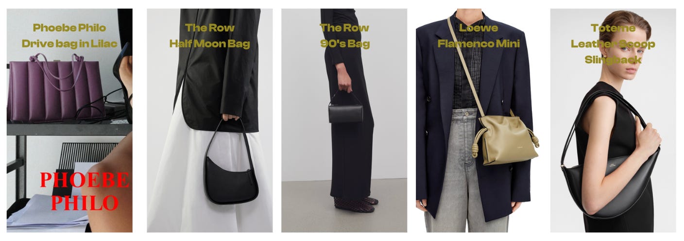 Grow also wearing.In smaller bags, the Row continues to be a brand standout. There was a 90s bag flurry in 2024 and the Half Moon Bag continues to enter wardrobes. Loewe’s Flamenco pouch also grew in popularity, especially since it comes in so many colors. Toteme expanded into handbags and the Sling is a great Row or Lemaire alternative.