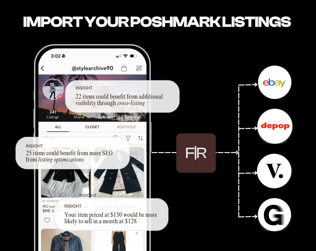 We’ll also give you a closet analysis before you import. Learn whether your listings would sell well on other platforms, get insights on pricing, and learn how your listings could be optimized.