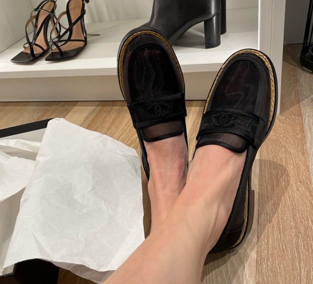 Chanel: Although Chanel bags continue as a high value classic at secondhand, we’ve also noticed more investing in the timeless shoe style that’s captured fashion Substack’s attention: the loafer. Staple colors like brown, black, and white in streamlined shapes were top buys. We were especially into these preloved statement mesh loafers trimmed with Chanel’s iconic gold chain that one of our savvy users added to their 2025 wardrobe.