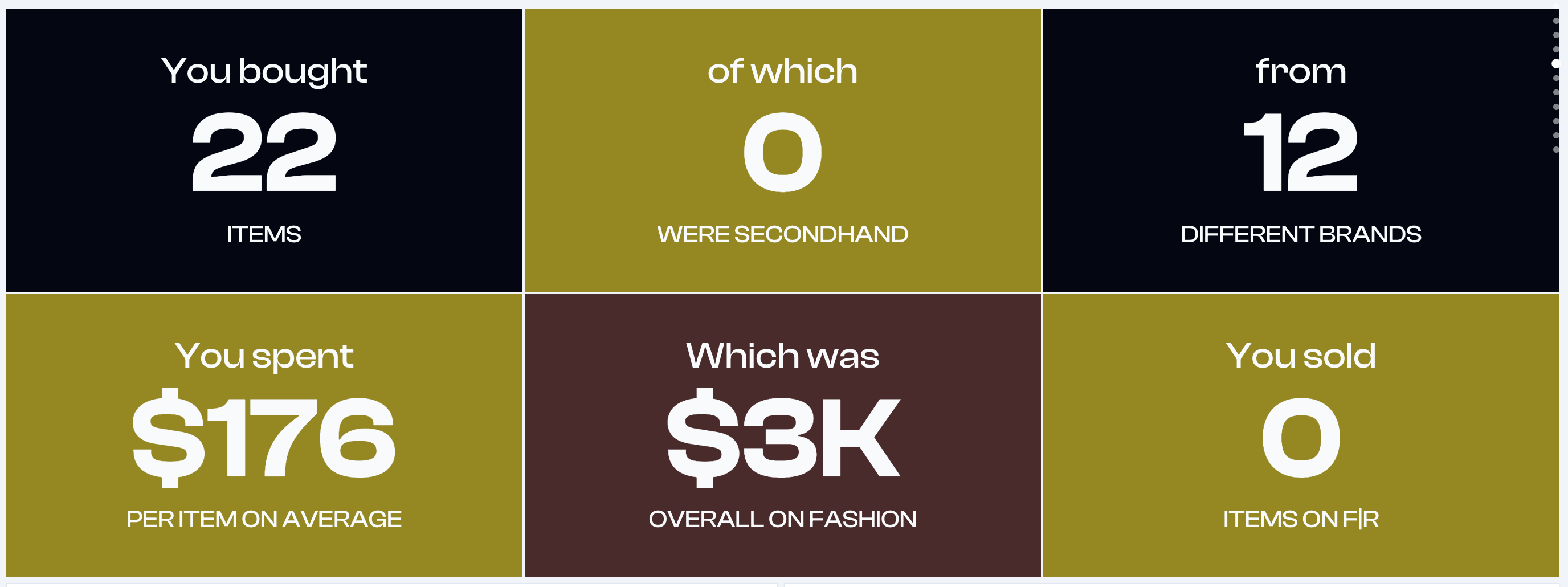 Think Spotify Wrapped, but fashion - Wardrobe Wrapped is a journey through your 2024 closet chronicles. This isn't just about celebrating your style choices – it's about getting real with your consumption habits