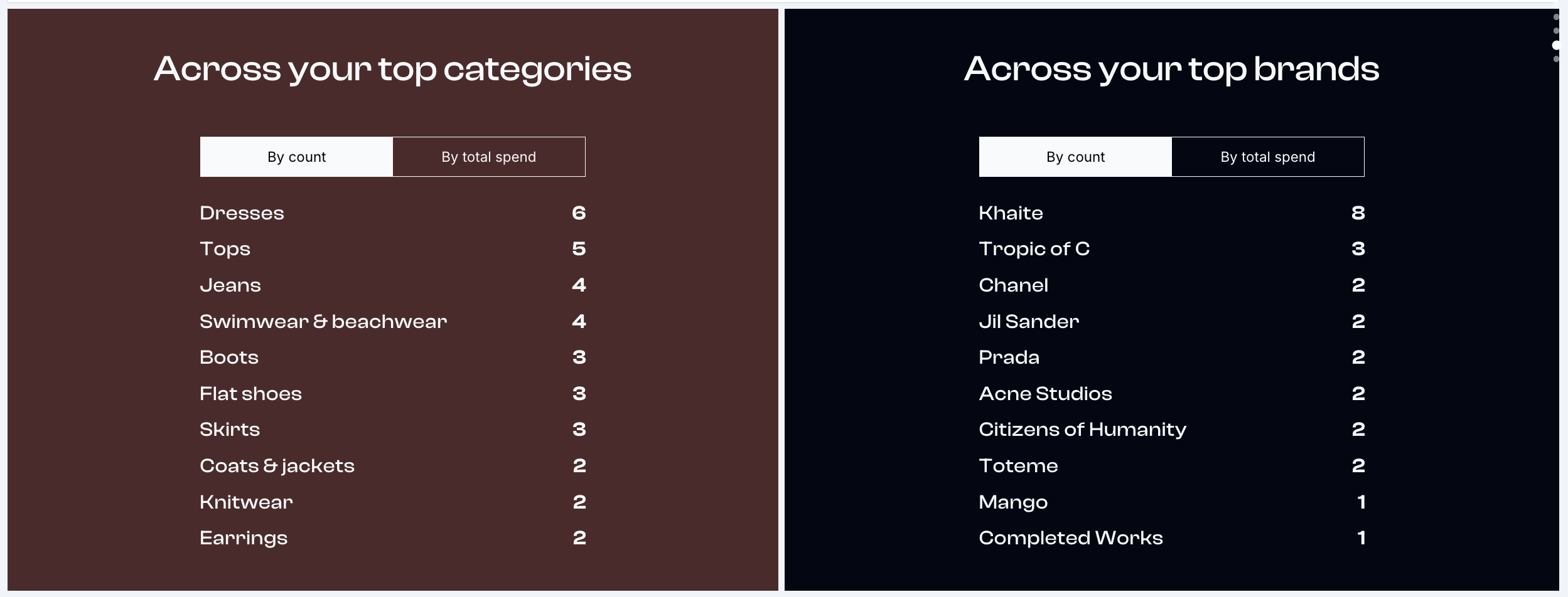 We’re taking you on a journey back through the 2024 evolution of your closet so that you can go into 2025 with intention. Wrapped isn't just about celebrating your style – it's about understanding your consumption patterns to make more intentional choices in 2025. Think Spotify Wrapped, but understanding your relationship with fashion.